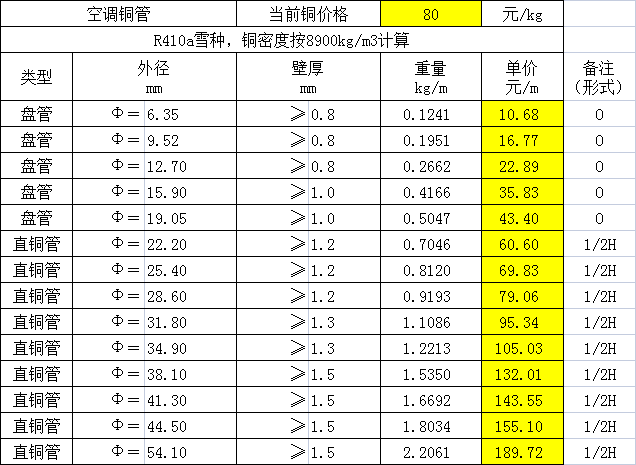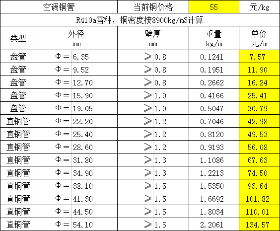 以紫銅管為例,計算公式:每米重量=(管徑-壁厚)× 壁厚 × 0.028